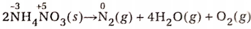NH4NO3 molecule has two N-atoms, out of which one has an oxidation number of -3 and the other has an oxidation number of +5—the decomposition of NH4NO3 results in N2(g).